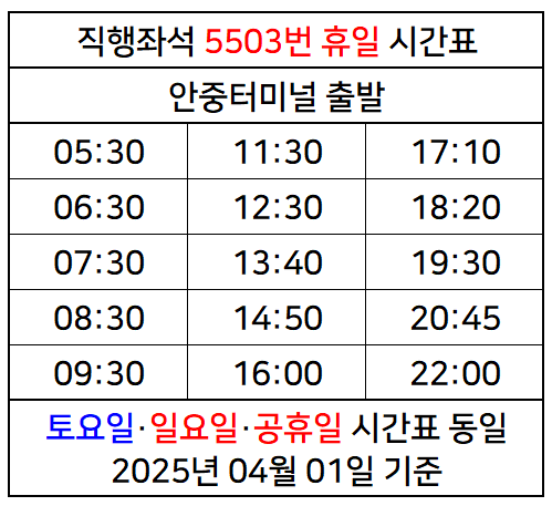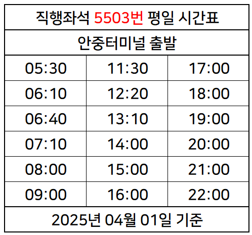 [5503]직행좌석 5503번 버스정보 시간표 (안중·청북·의왕TG·사당역)