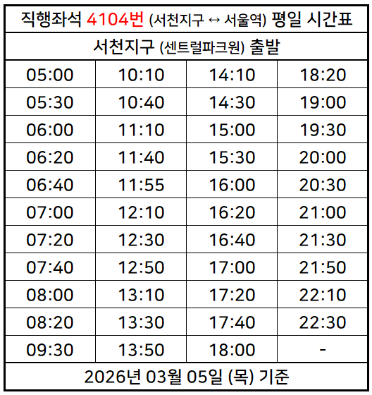 [4104]직행좌석 4104번 버스정보 시간표 (서천지구·상갈역·서울시청·서울역)