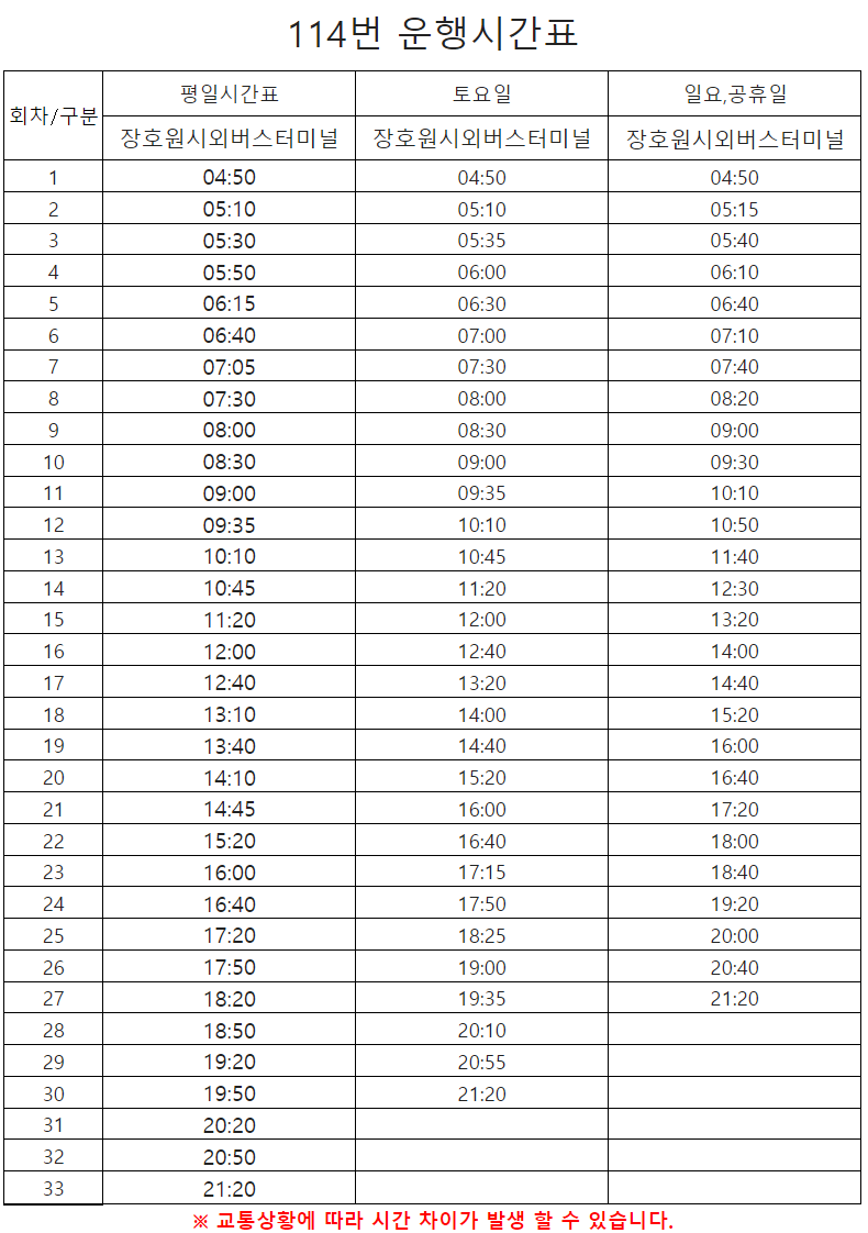 배차간격 : 평일 20~35분 / 토요일 20~40분 / 공휴일 25~45분